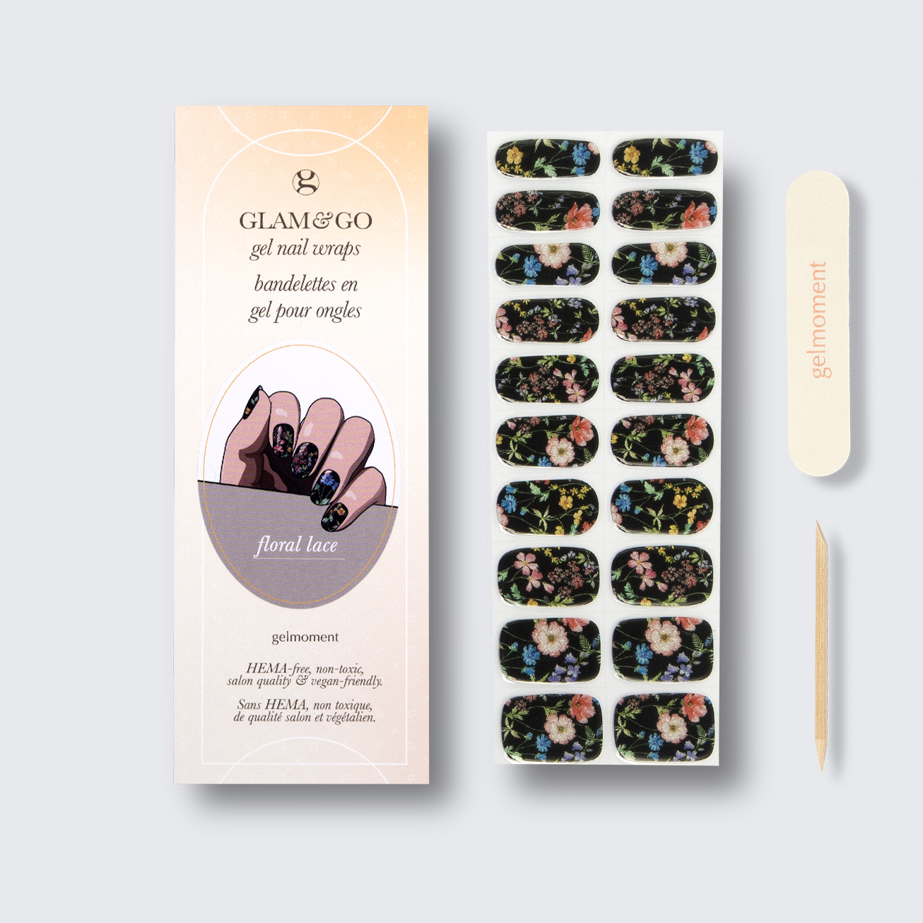 Plus, not only do GLAM & GO gel nail wraps provide the same glossy finish you know and love from our regular gel polish, but they are also HEMA FREE and have a wear time of up to 14+ days.